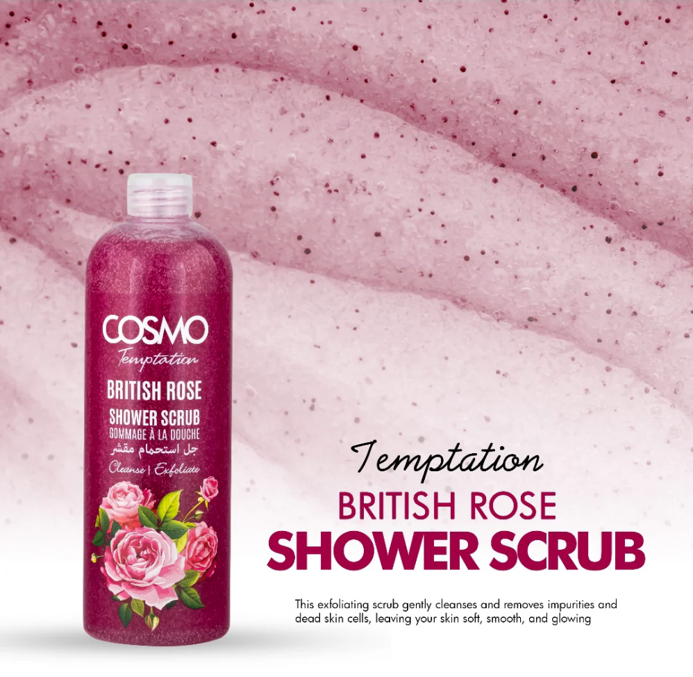 Cosmo's exfoliating shower gel, enriched with blueberries, helps deeply cleanse the skin and gently remove dead skin cells. It contains natural exfoliating granules that help smooth skin texture and enhance its radiance, with a refreshing berry scent that leaves you feeling clean and fresh all day long.